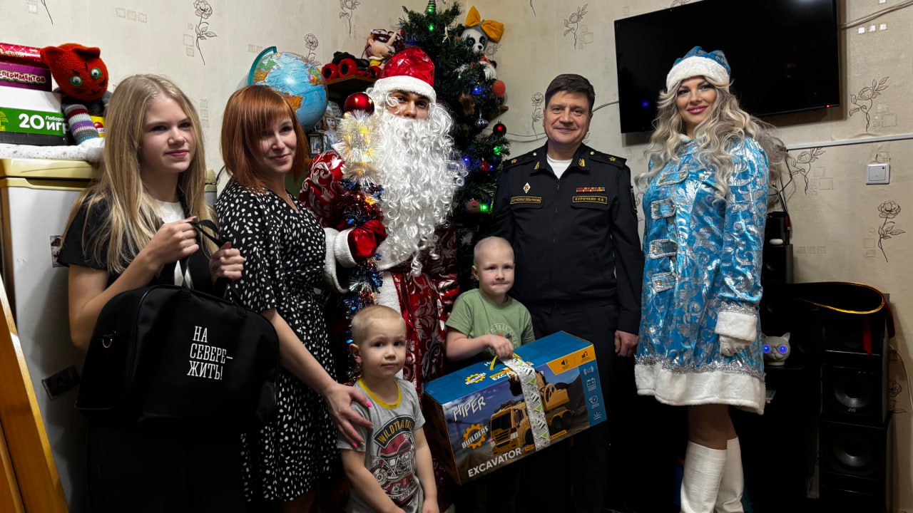 Игорь Курочкин исполнил мечту 6-летнего мальчика из Щукозера, чей отец находится на СВО, сообщили в пресс-службе флота. В гости к Вячеславу пришли Дед Мороз, Снегурочка и сам Игорь Курочкин, чтобы вручить ему игрушечный экскаватор на радиоуправлении. Брат и сестра мальчика также не остались без подарков. Для ребят провели праздничную программу с танцами, играми и конкурсами.