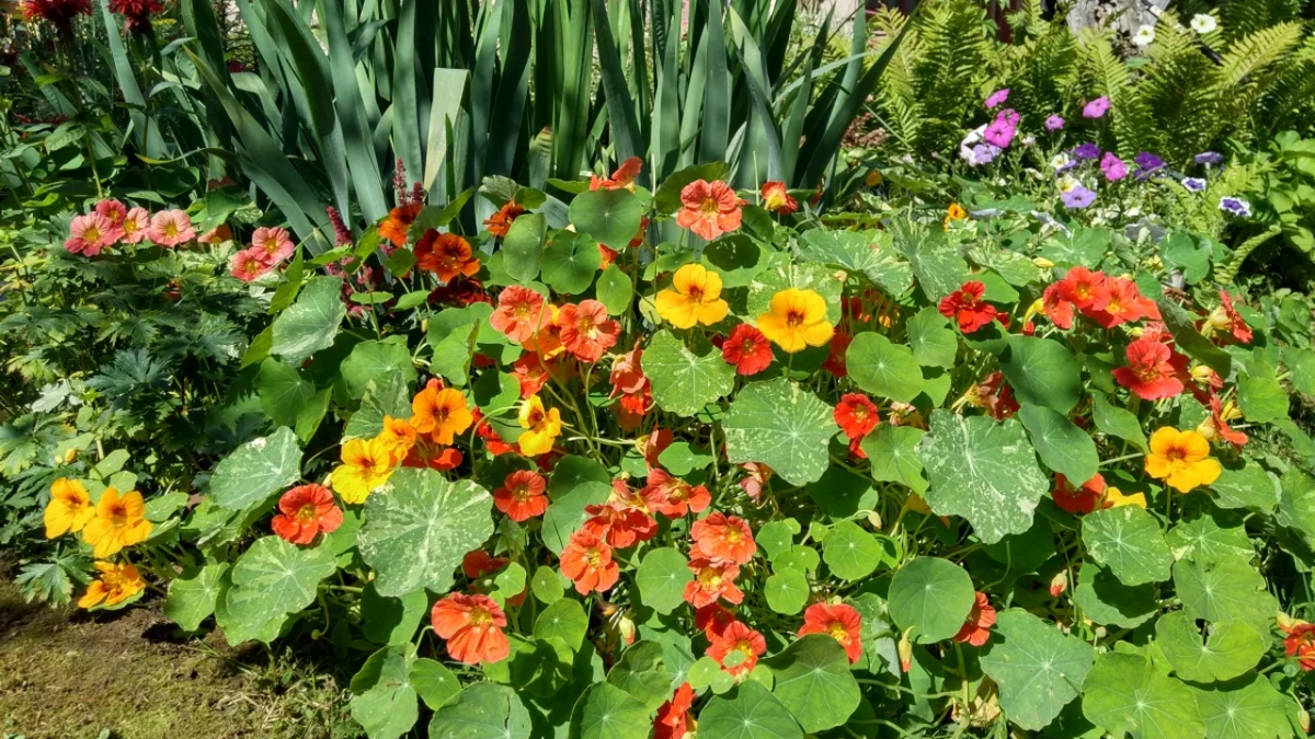 - Настурция: быстро разрастается, образуя плотный покров. Идеально подходит для высадки вдоль грядок.