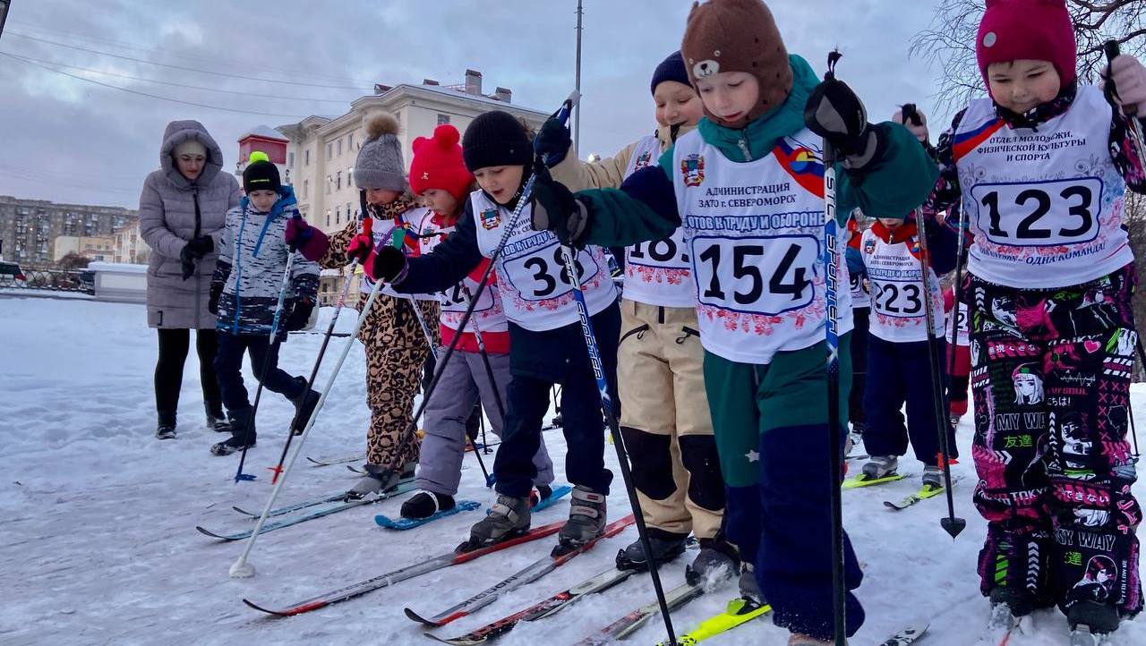 90 юных северян в возрасте от 3 до 10 лет преодолели километр трассы в городском парке на ватрушках, снегокатах и лыжах.