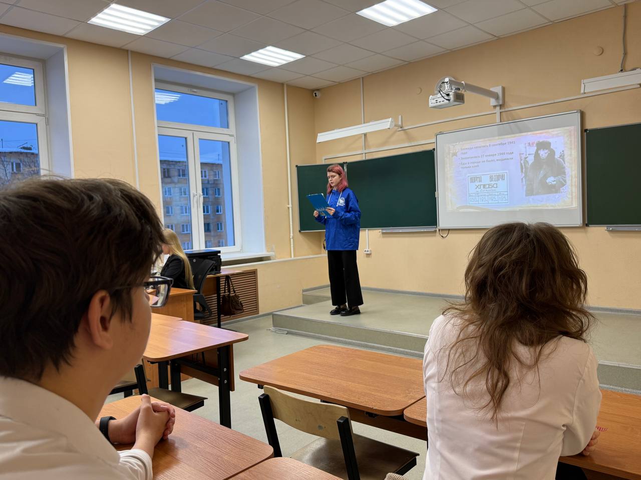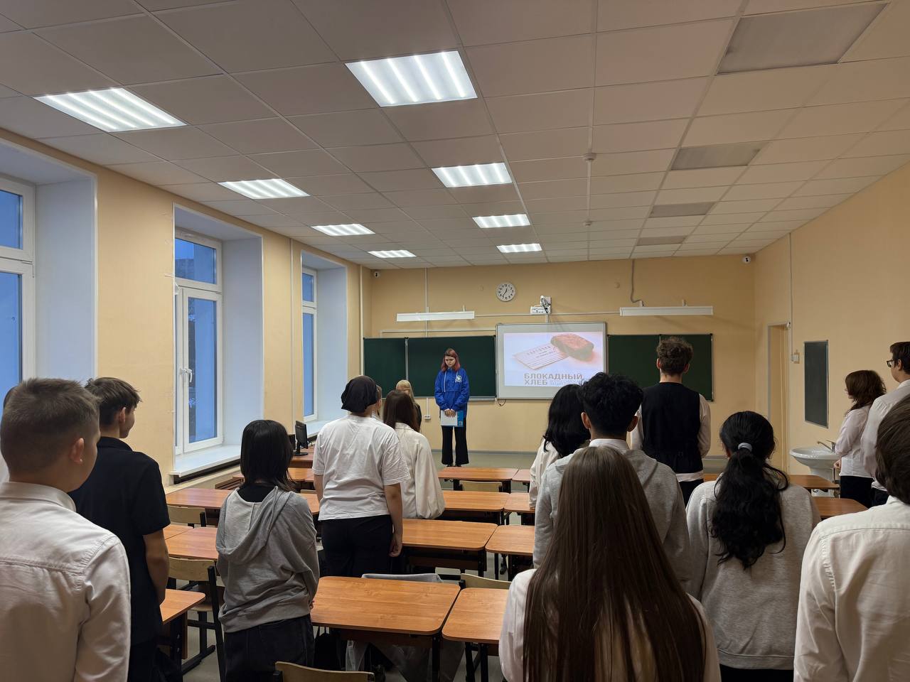 Одно из них – всероссийский урок памяти «Блокадный хлеб» – прошло в школе № 58 (корпус 3, ул. Карла Либкнехта, 18а). Специалист МАУ МП «Молодежь51» кратко рассказал ребятам об истории блокады, подробно описал, как и из чего ленинградцы готовили хлеб, вспомнил значимые имена и даты. Завершился урок минутой молчания в память о погибших ленинградцах-блокадниках и защитниках города на Ниве.
