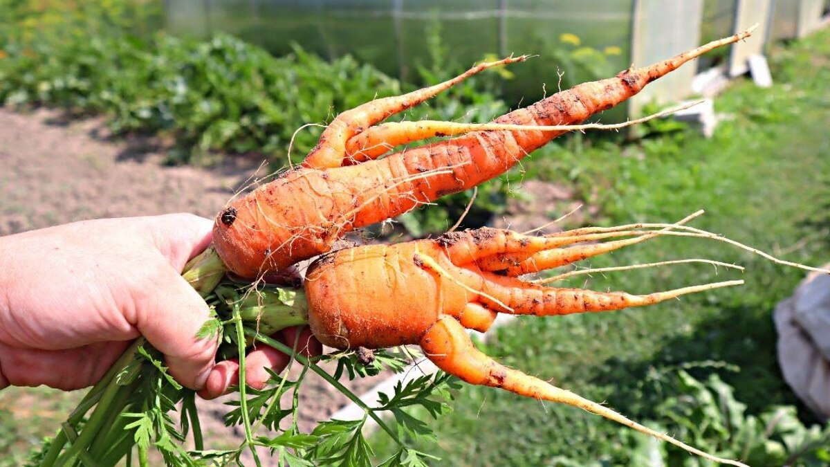- Что можно получить: Изогнутую морковь, которая не может развиваться, и в конечном итоге растет бесформенно.