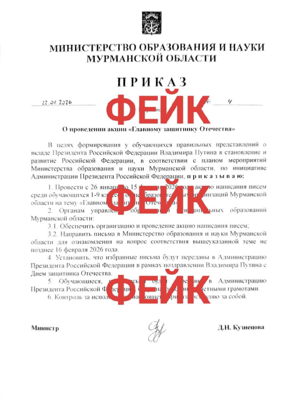Внимание: фейковый приказ минобрнауки Мурманской области
