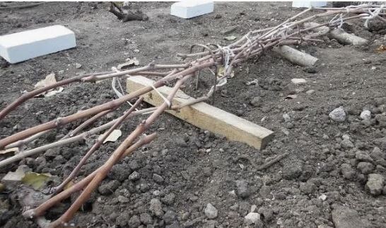 Аккуратно уложить лозы на землю, подложив лапник или фанеру для избежания прямого контакта с почвой.