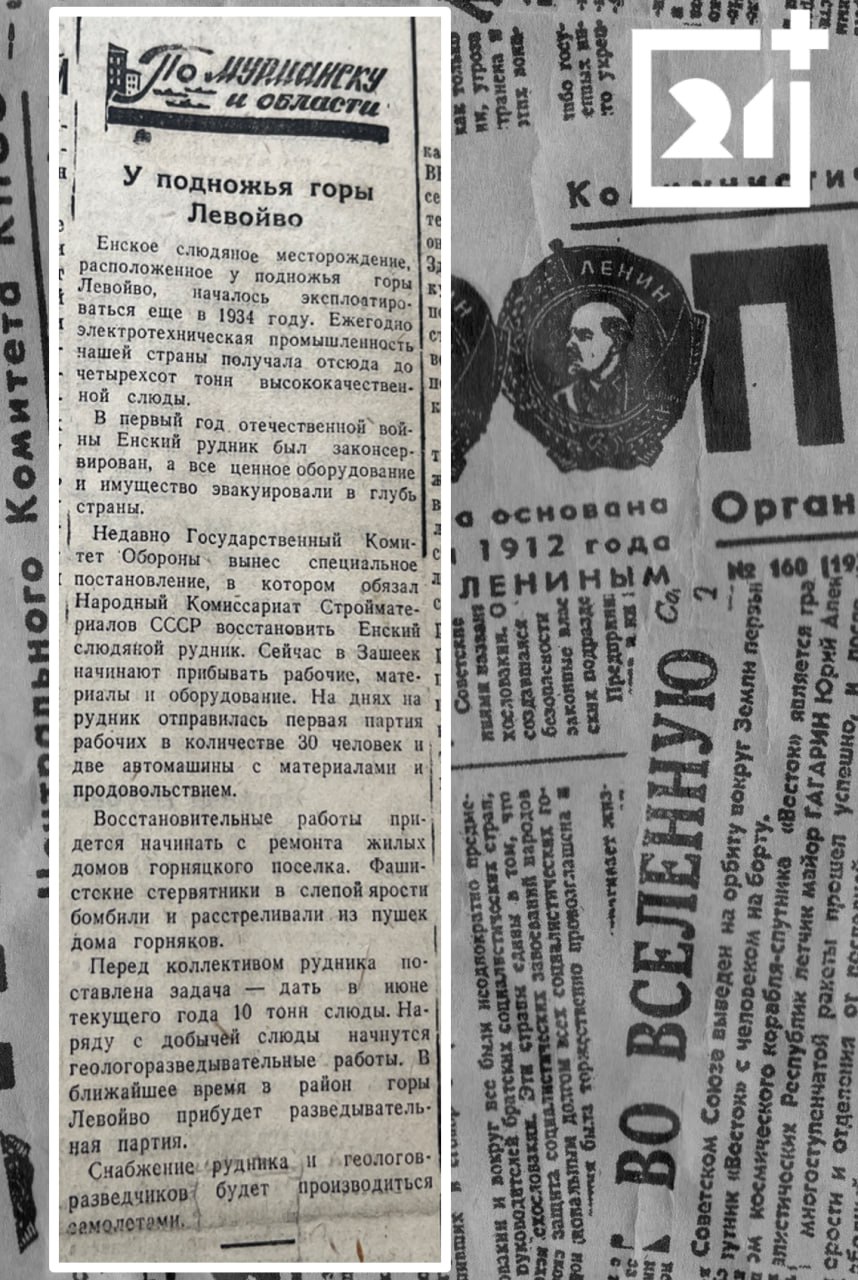 Речь в ней идет о возобновлении работ на Енском слюдяном месторождении. Добыча высококачественной слюды, начатая в довоенном 1934-м успешно продолжилась после Победы.