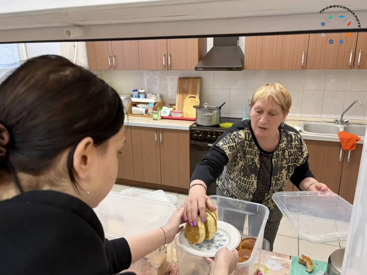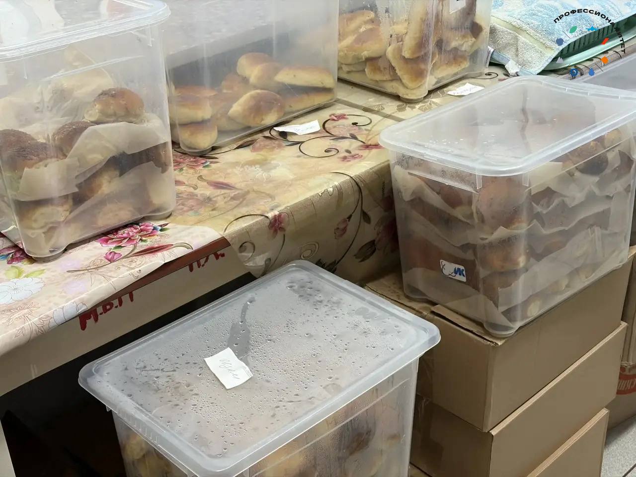 А затем вместе с волонтёрами раздают свежую выпечку и организованные городом сухие пайки северянам.