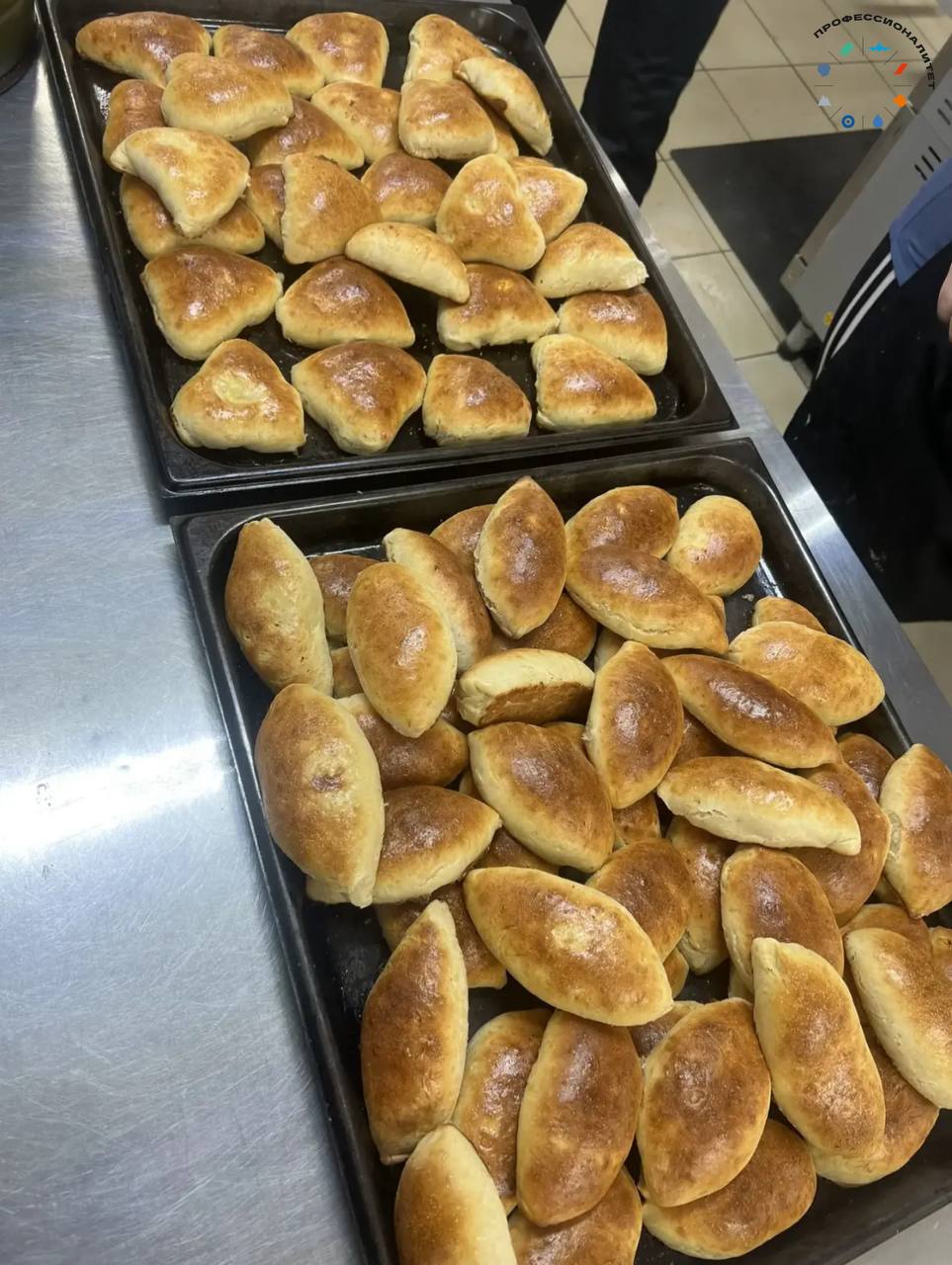В пункте поддержке населения на Ушакова, 9 третьекурсники специальности «Поварское и кондитерское дело» со своими мастерами пекут свежий хлеб и булочки для всех, кто в этом нуждается.