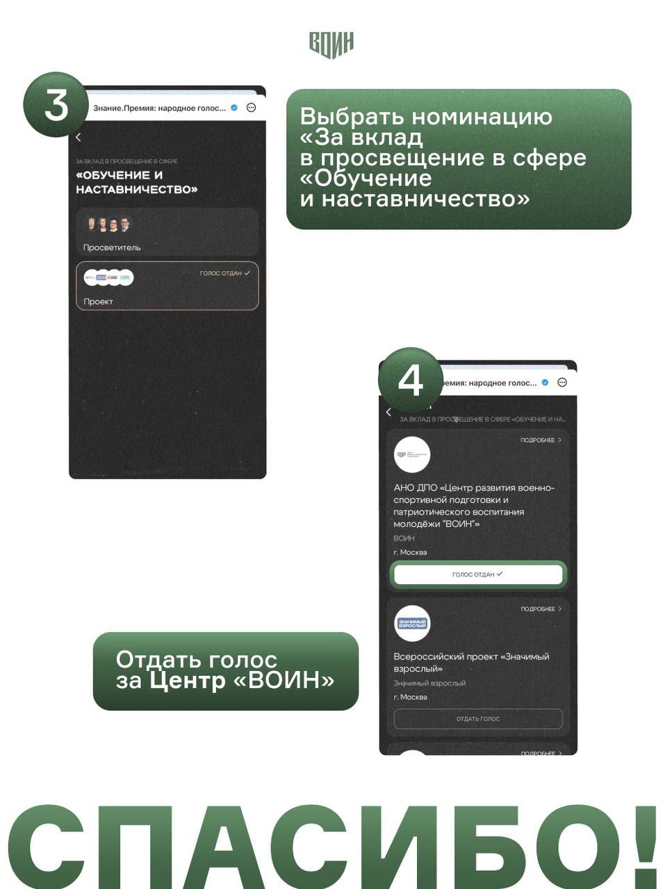 Если для вас важно поддерживать своих и верить в добро, проголосуйте за Центр «ВОИН»