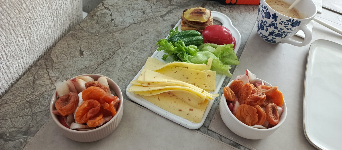 На тарелке встречаются простые ингредиенты: молодой кабачок, творог с персиком и сухофруктами, ломтик сыра с орехами, пару яиц. Всё это складывается в сытный завтрак, который даёт энергию без чувства перегруза. Время идёт, и обед уже не ранит сознание строгими запретами: мясо крупное, блюда кажутся уверенными и понятными.