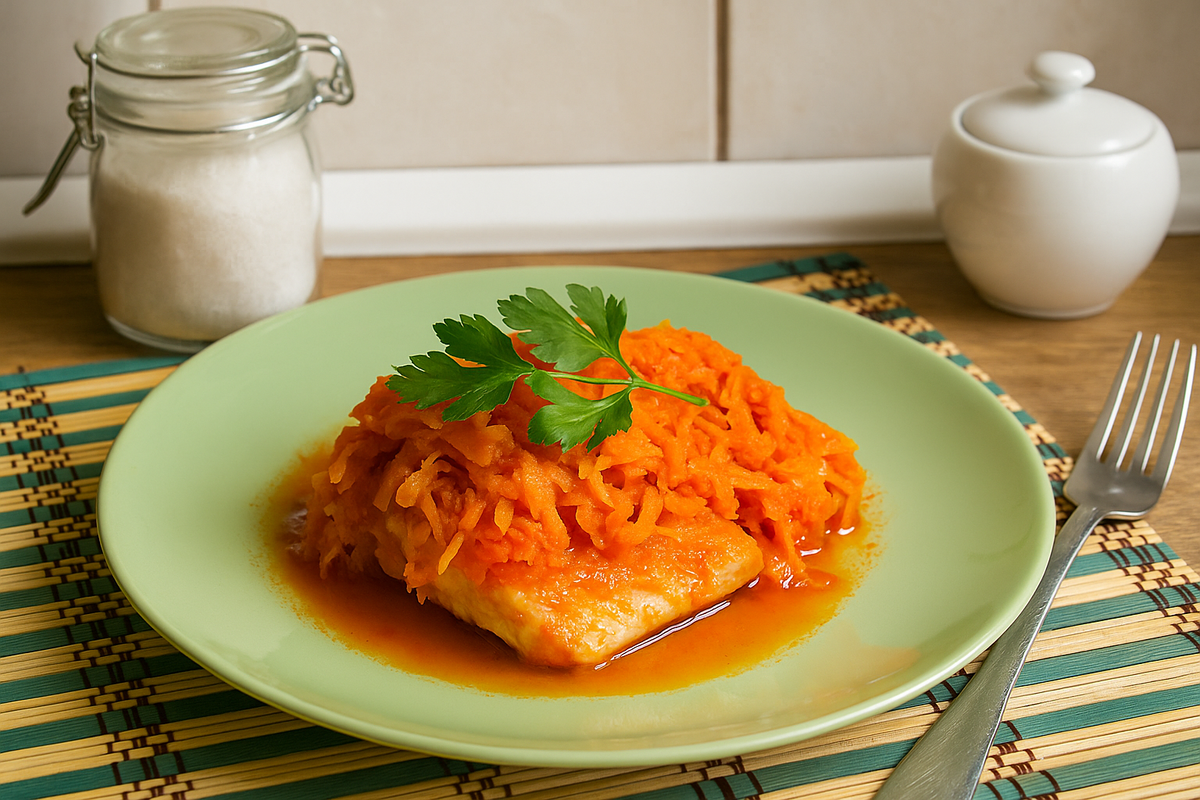 Ингредиенты под рукой: рыба трески любого размера, лук, морковь, паста из томатов и пара привычных приправ. Важна не точная весовая точность, а ровный баланс сладости и кислинки, который задают уксус и сахар.