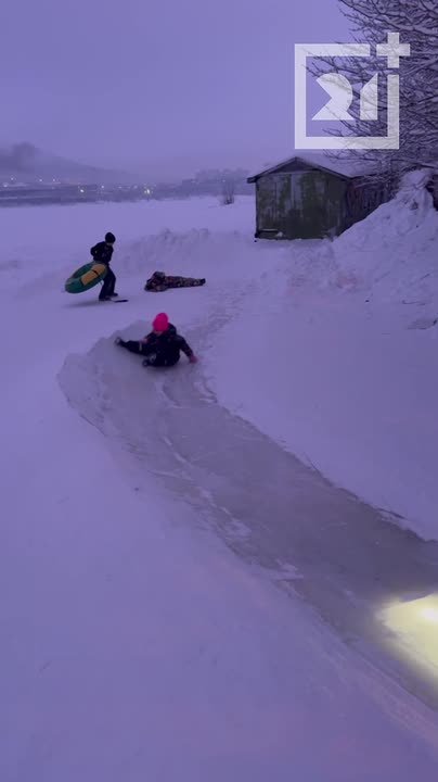 Дети приходят сюда с ватрушками, ледянками и даже картонками – катаются и греются в движении. А с наступлением вечера горка превращается в яркий уголок – внутри включается подсветка.