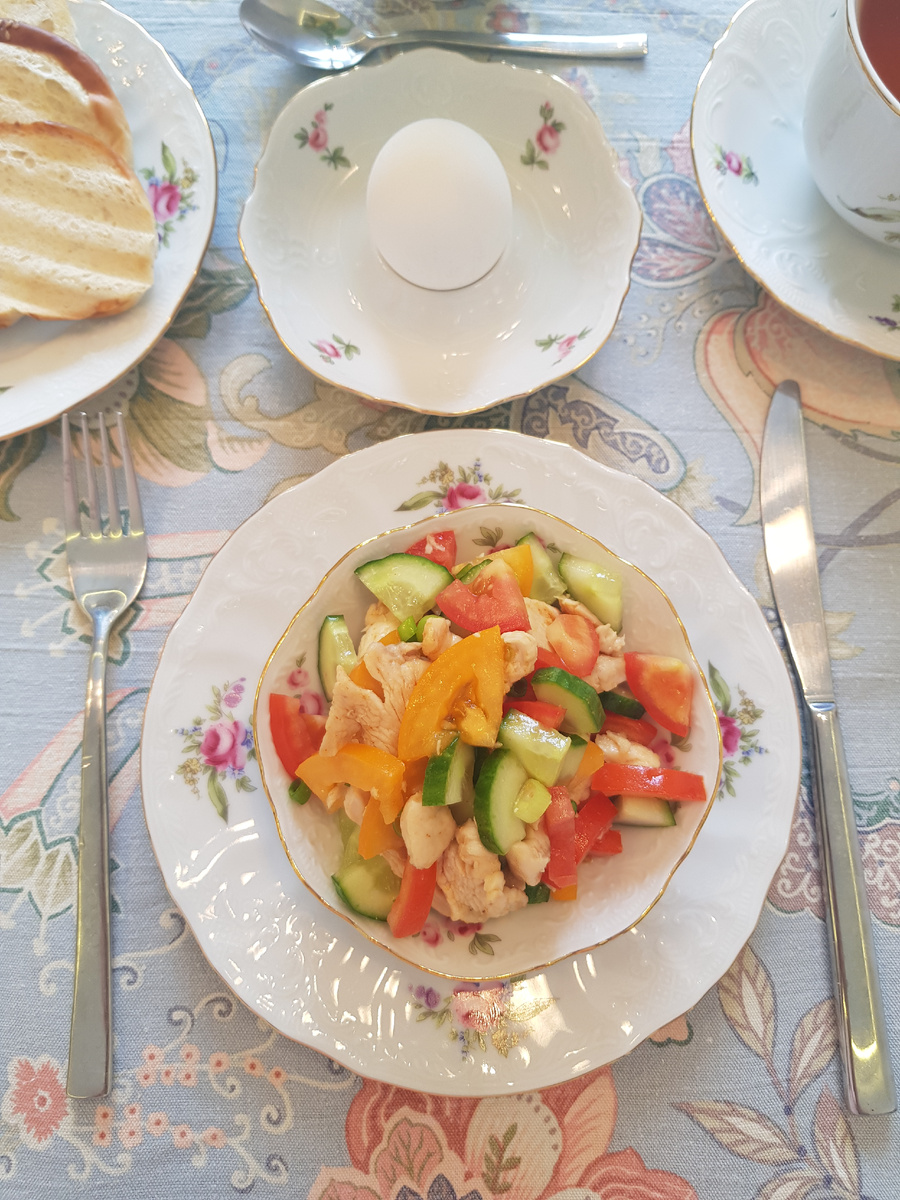 Сегодня предлагается уникальный рецепт легкого и вкусного салата, который станет отличным выбором для утреннего приема пищи. Этот салат включает нежное куриное филе и свежие овощи, что делает его идеальным для заряда энергией на весь день.
