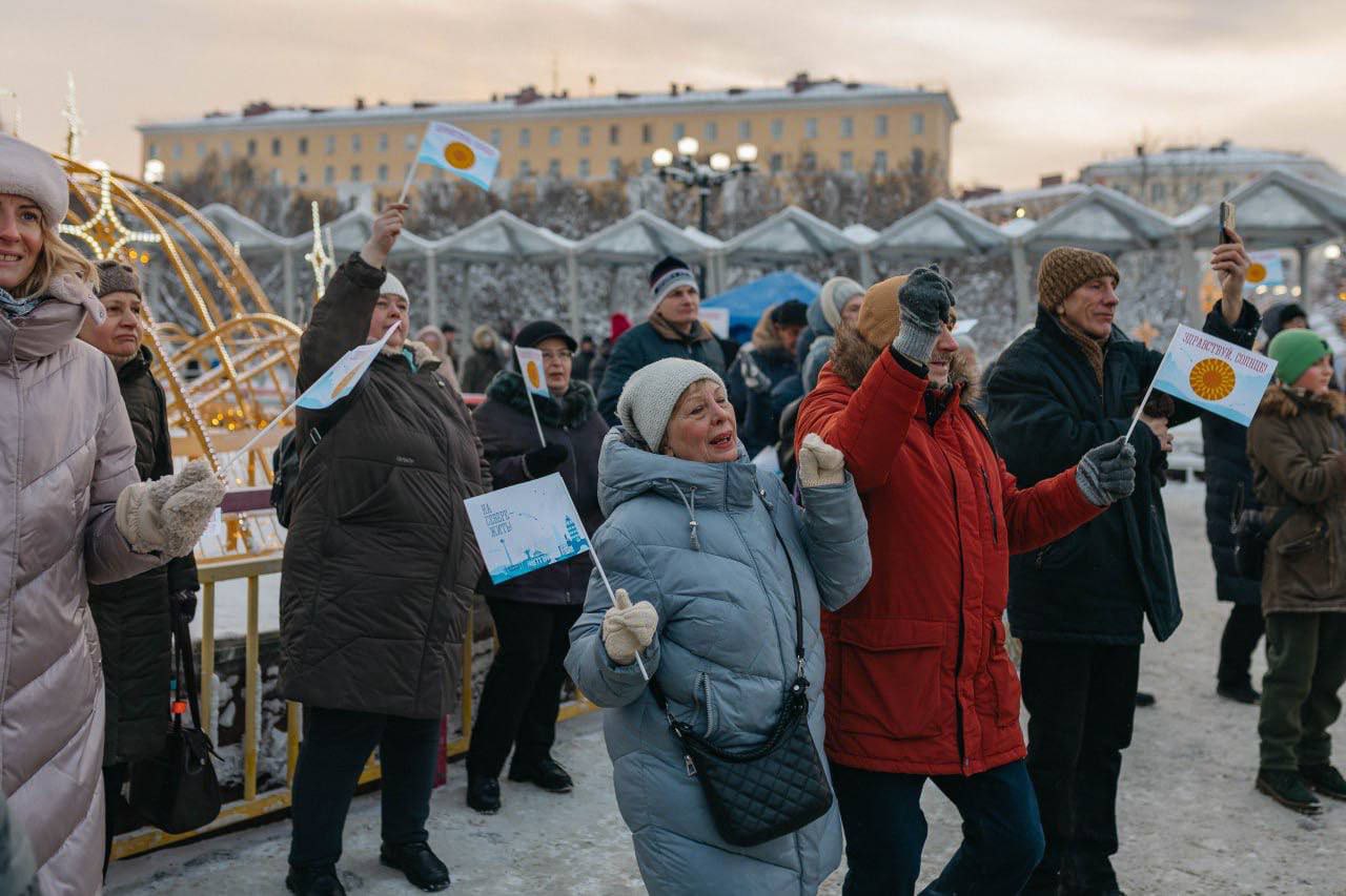 Сегодня в сквере возле ДКиНТ им. С.М. Кирова собрались сотни горожан, чтобы вместе отметить возвращение солнечного света на Кольский Север