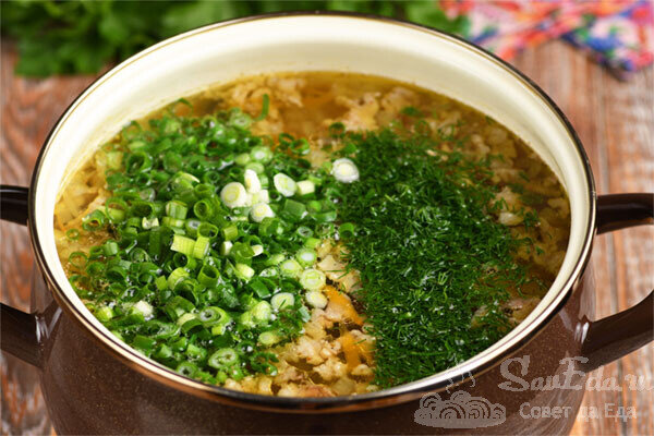 Добавляем зелень, и вот, ваш сытный суп готов к подаче. Буквально 3 литра великолепного блюда радует своим вкусом и ароматом!