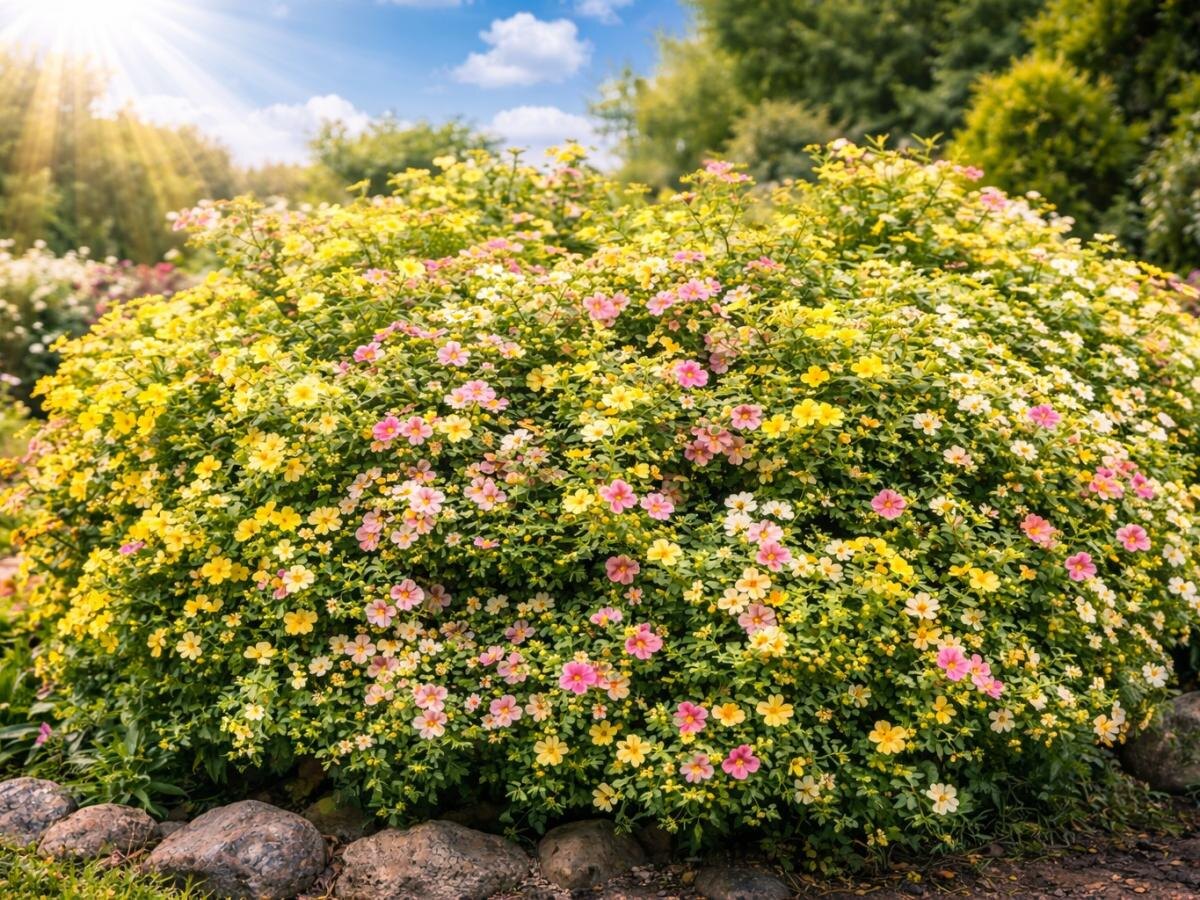 Лапчатка курильская, известная как курильский чай, становится новым фаворитом. Она цветёт с мая до октября и выдерживает морозы до –35 °C, отлично чувствует себя в стандартной садовой почве. Куст формирует плотную крону и меняет окраску листьев осенью, добавляя глубины в общий вид сада. Устойчивость к ветрам и сложным условиям обуславливается её происхождением с Курильских островов.