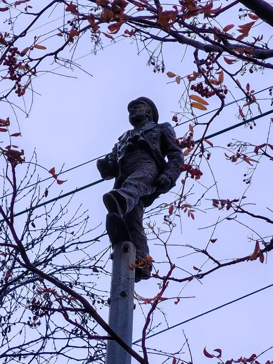 В сквере капитанов, что напротив здания Тралфлота на улице Шмидта, установлен необычный монумент – морской волк шагает домой с рейса. Чтобы разглядеть его, понадобится бинокль или хороший объектив – фигура находится на высоте восьми метров.