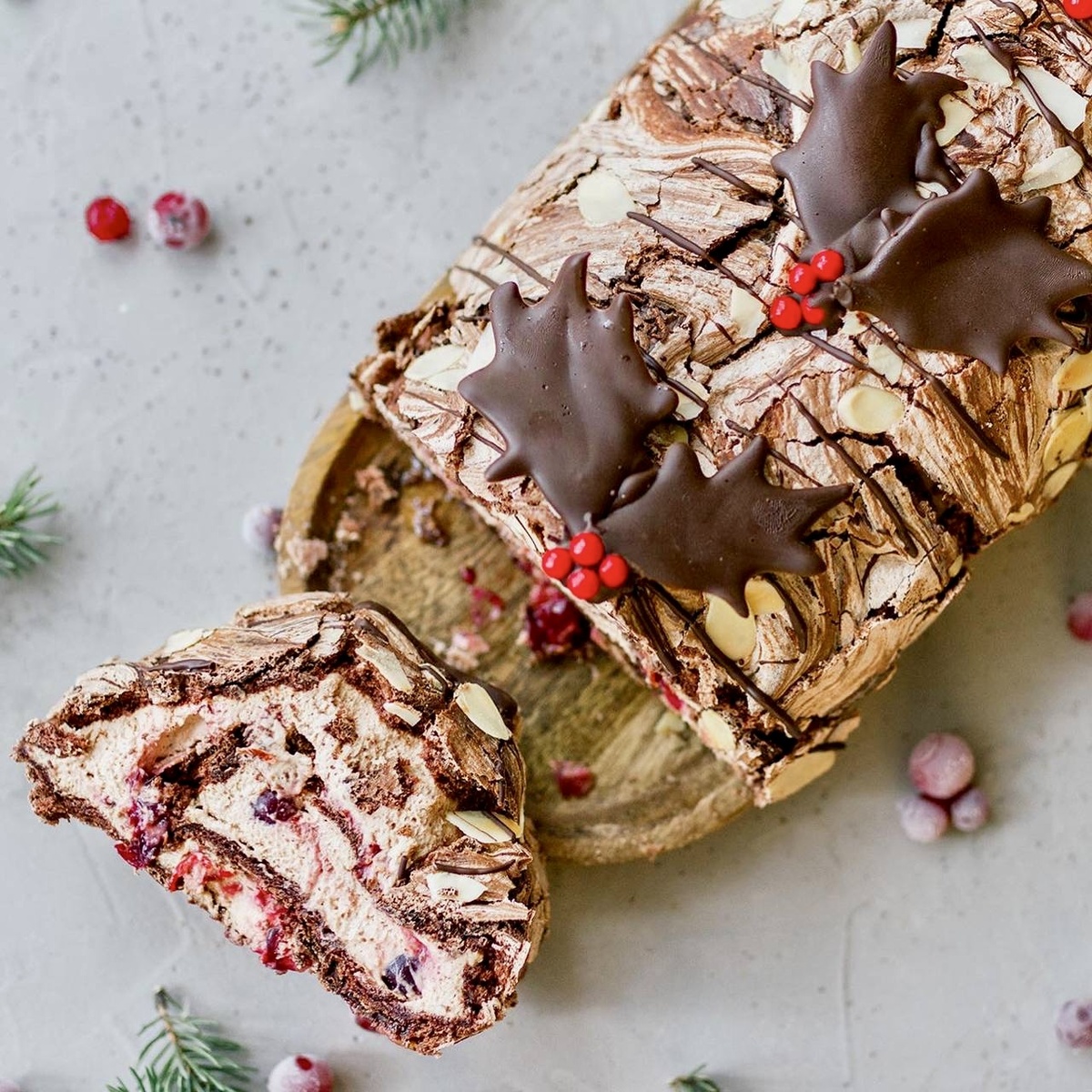 10. Аккуратно сверните корж в рулет, украсьте по желанию и уберите в холодильник на 5 часов для стабилизации.