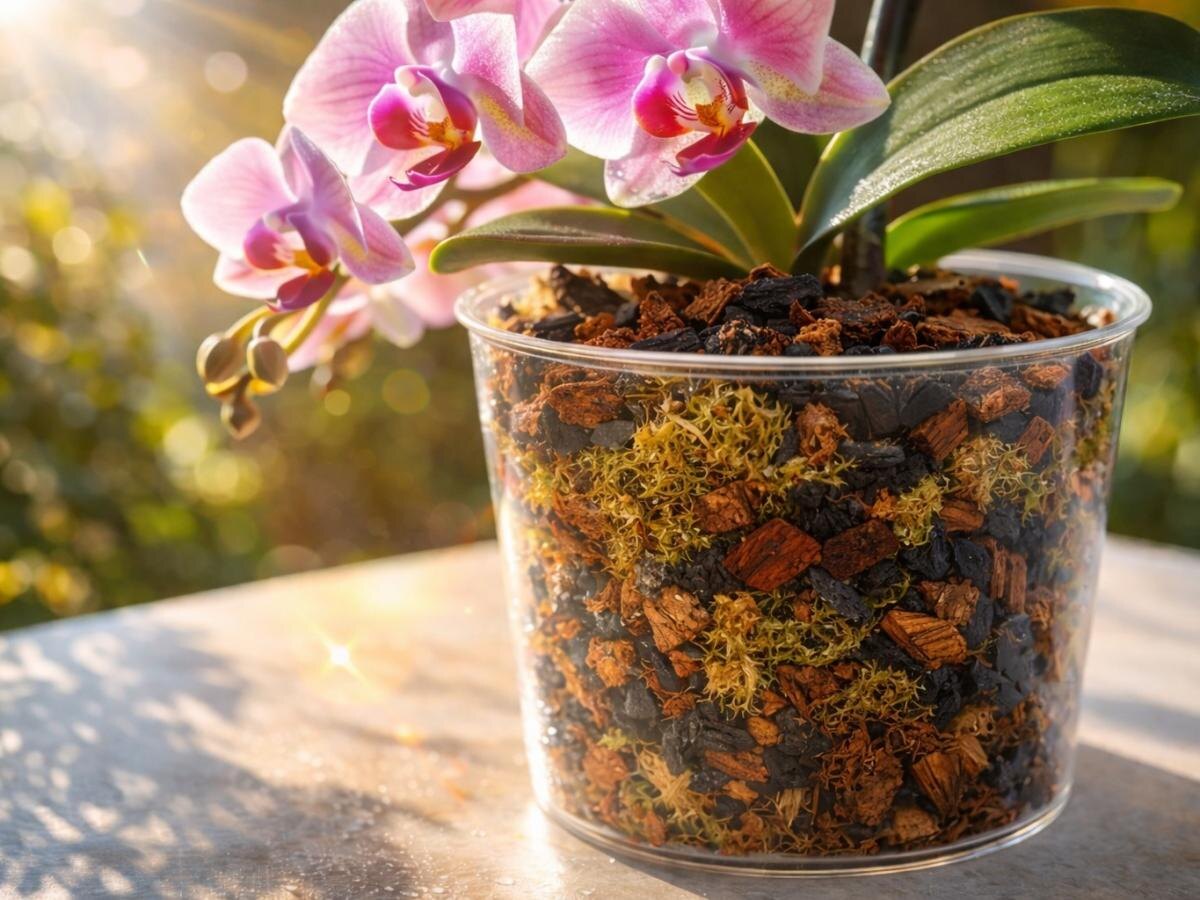 Для орхидей важно использовать не грунт, а специальный субстрат, который обеспечивает правильные физические условия: поддерживает корни, обеспечивает вентиляцию, дренаж и доступ света. Подходящие компоненты для субстрата – это сосновая кора, древесный уголь, керамзит и кокосовые чипсы. Включение сфагнума в состав помогает удерживать влагу без создания болотистых условий.