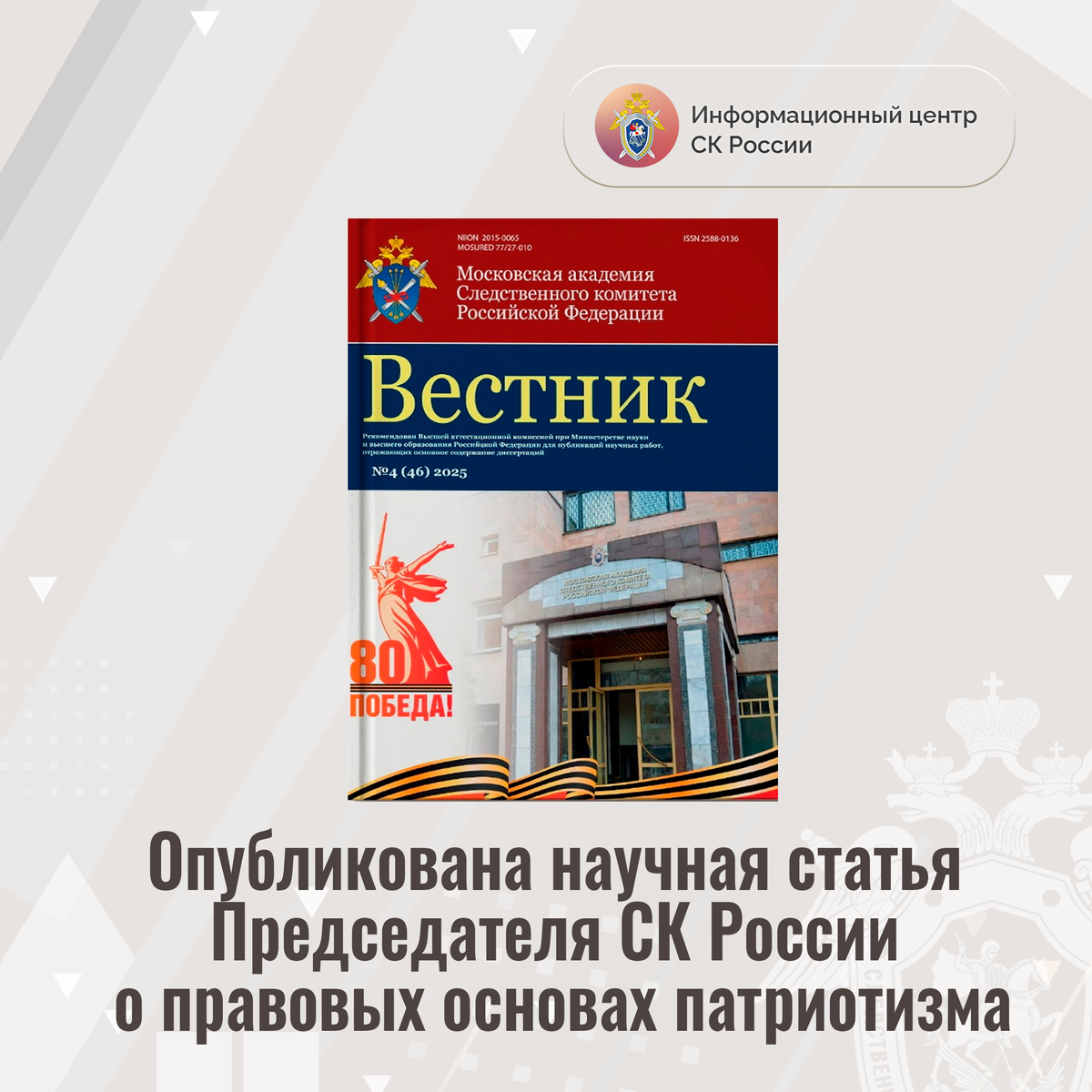 В свежем выпуске журнала «Вестник Московской академии Следственного комитета Российской Федерации» за 2025 год опубликована статья Председателя СК России, заслуженного юриста и доктора юридических наук Александра Ивановича Бастрыкина.