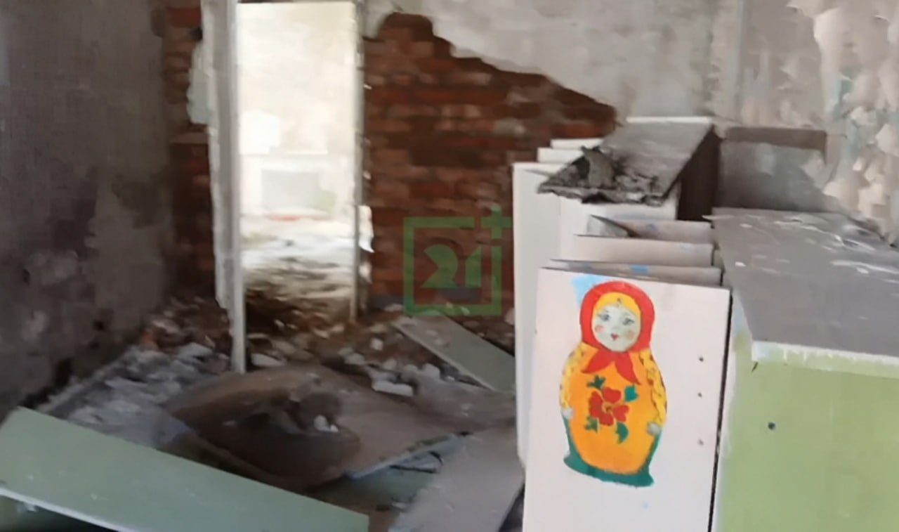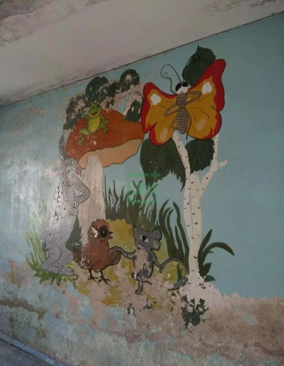 Но с 90-х все изменилось – садик закрылся, здание опустело, и с тех пор оно только разрушалось. Обвалилась часть крыши, окна зияют пустотой, но кое-где на стенах до сих пор сохранились детские рисунки.