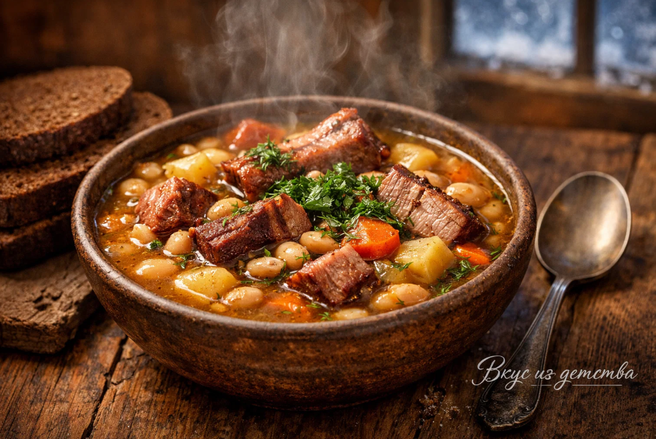 Существуют блюда, которые наполняют готовку особым смыслом. Таковым является фасолевый суп с копчёностями, который требует времени и настроения. Эта кулинарная традиция зародилась более пятнадцати лет назад, когда отопление в старых хрущёвках оказалось крайне ненадёжным. Каждый раз, когда батареи переставали греть, начиналось священное приготовление.