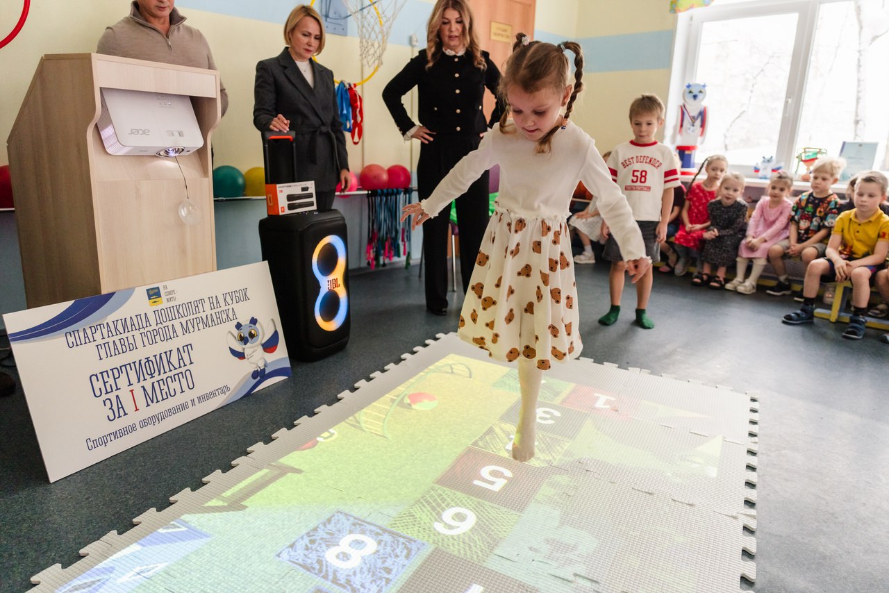 Сегодня заместитель главы города Мурманска Елена Ширшова вручила командепобедителю Спартакиады дошколят на Кубок Главы города Мурманска комплект интерактивного оборудования