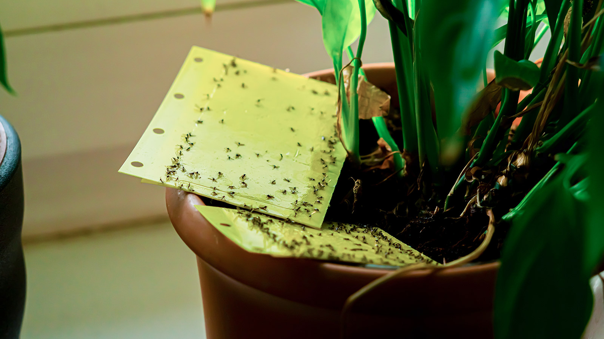 - Липкие ловушки: Используйте липкие ленты или желтые карточки, чтобы поймать летающих мошек. Вешайте их поближе к горшку с растением.