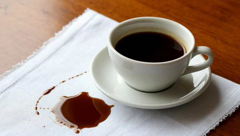 На белых вещах пятна кофе могут быть особенно заметными. Лимонный сок обладает отбеливающими свойствами — просто нанесите его, подождите 10-15 минут и промойте. Перекись водорода также эффективно удаляет пятна, но её следует использовать осторожно.