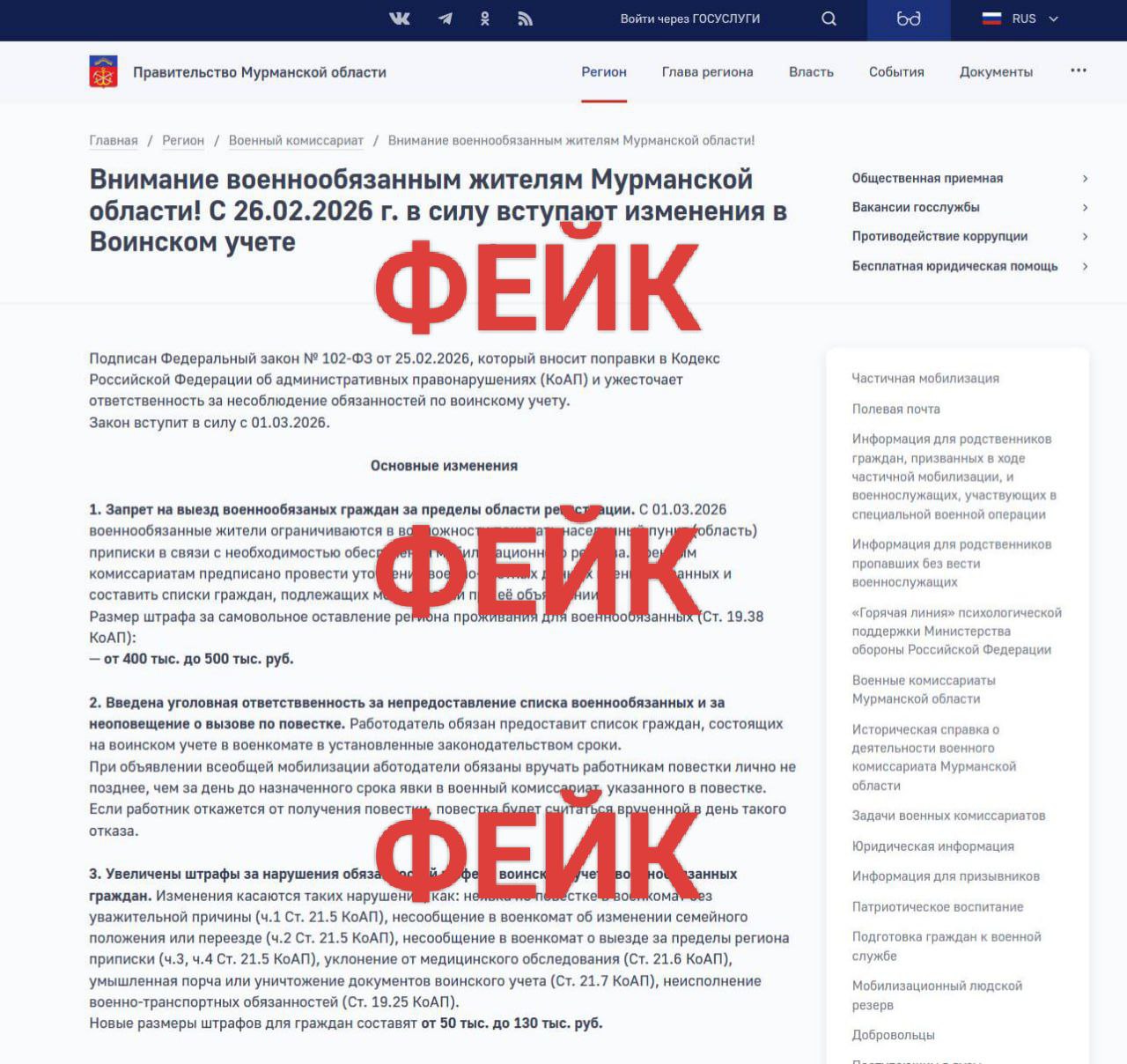 В ложной новости говорится, что 1 марта военнообязанные жители ограничиваются в возможности покидать населенный пункт (область) приписки в связи с необходимостью обеспечения мобилизационного резерва.
