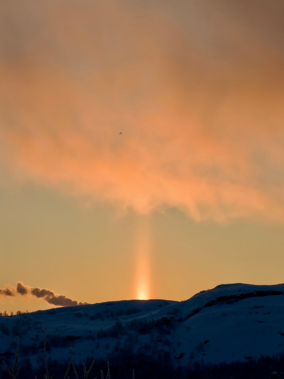 В Полярном северянке удалось поймать редкую красоту. Оксана Машкина сняла на камеру солнечный столб – когда рядом с восходящим или заходящим Солнцем видна ровная вертикальная полоска света, словно световой луч тянется вверх. В морозном воздухе бывают крошечные ледяные кристаллики, и когда солнечный свет от них отражается, получается такой красивый эффект