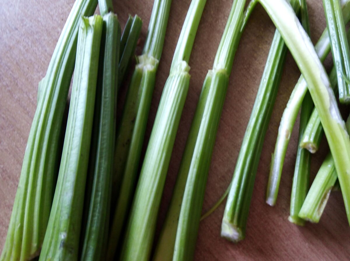 Первая фаза роста была медленной, но вскоре сельдерей начал активно развиваться. Приблизительно с середины июля начали срезать зелёные черешки, что продолжалось до поздней осени, принося разнообразие в рацион.