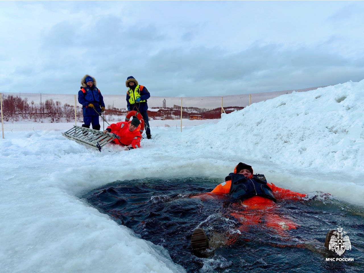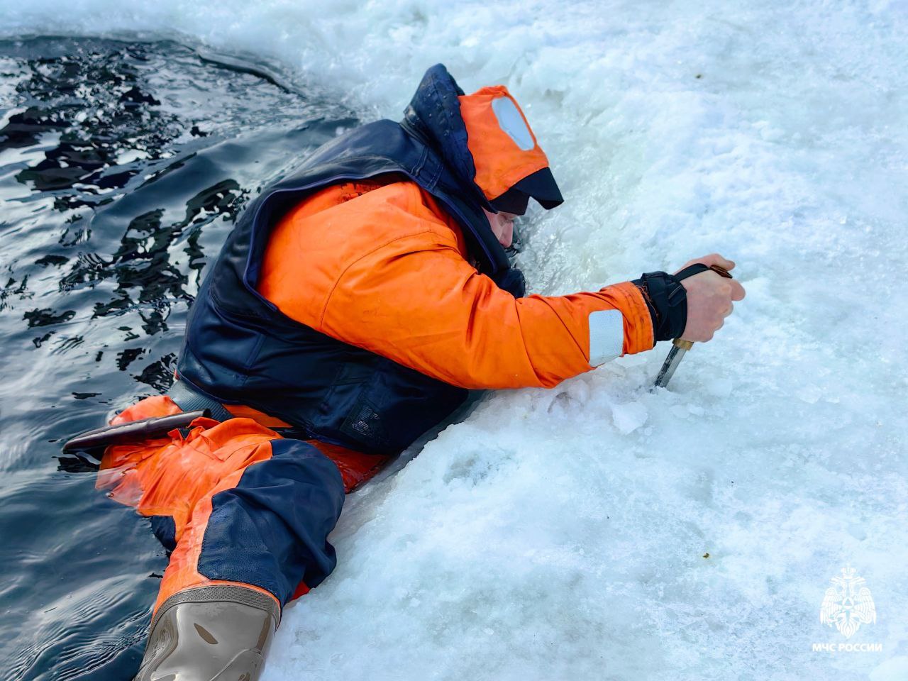Спасатели наглядно продемонстрировали последовательность действий при провале в полынью и алгоритм помощи пострадавшим, а также разобрали типичные ошибки и способы самоспасения.