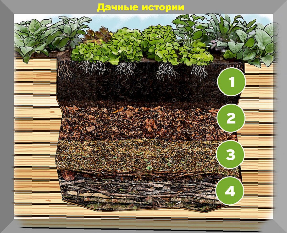 - Снимите верхний слой плодородной земли на глубину от 30 до 50 см и выложите дренажный слой из крупных веток и органических материалов, таких как бумага, листья или сено.