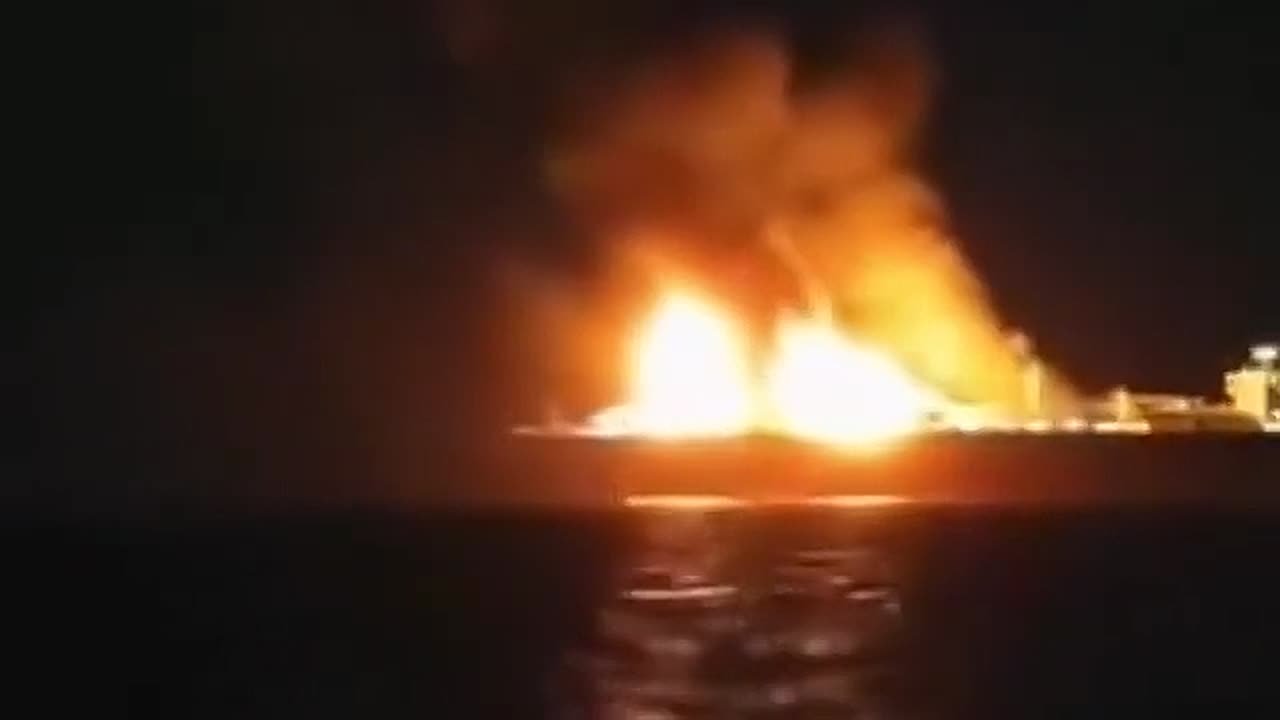 Газовоз Arctic Metagaz горит возле Мальты.
