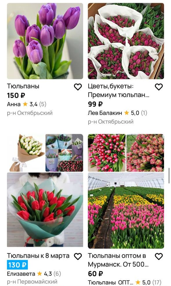 Первое, что приходит на ум – это сайт объявлений. «Бизнес» на тюльпанах к 8 марта процветает. Популярный сервис кишит предложениями: тут цены стартуют от 90 рублей за штуку.
