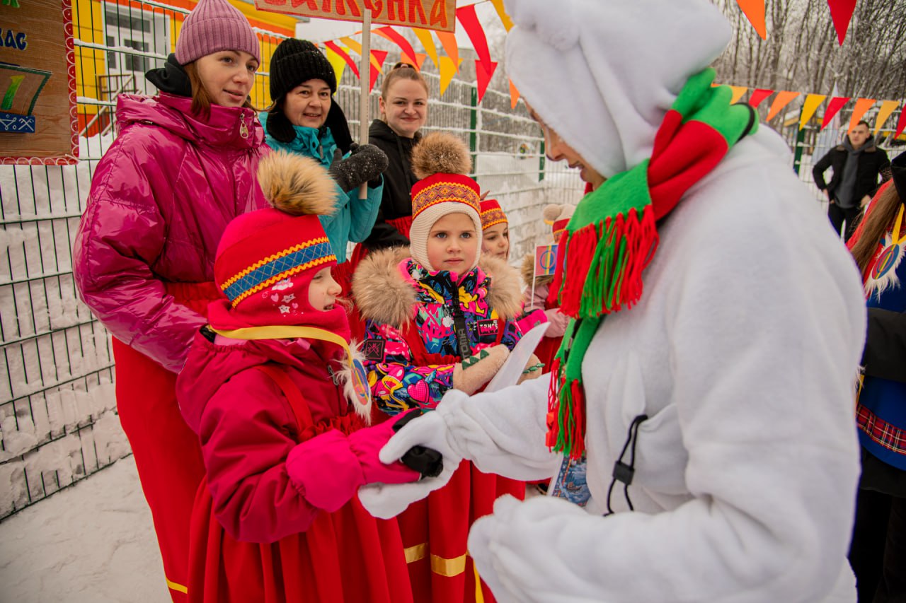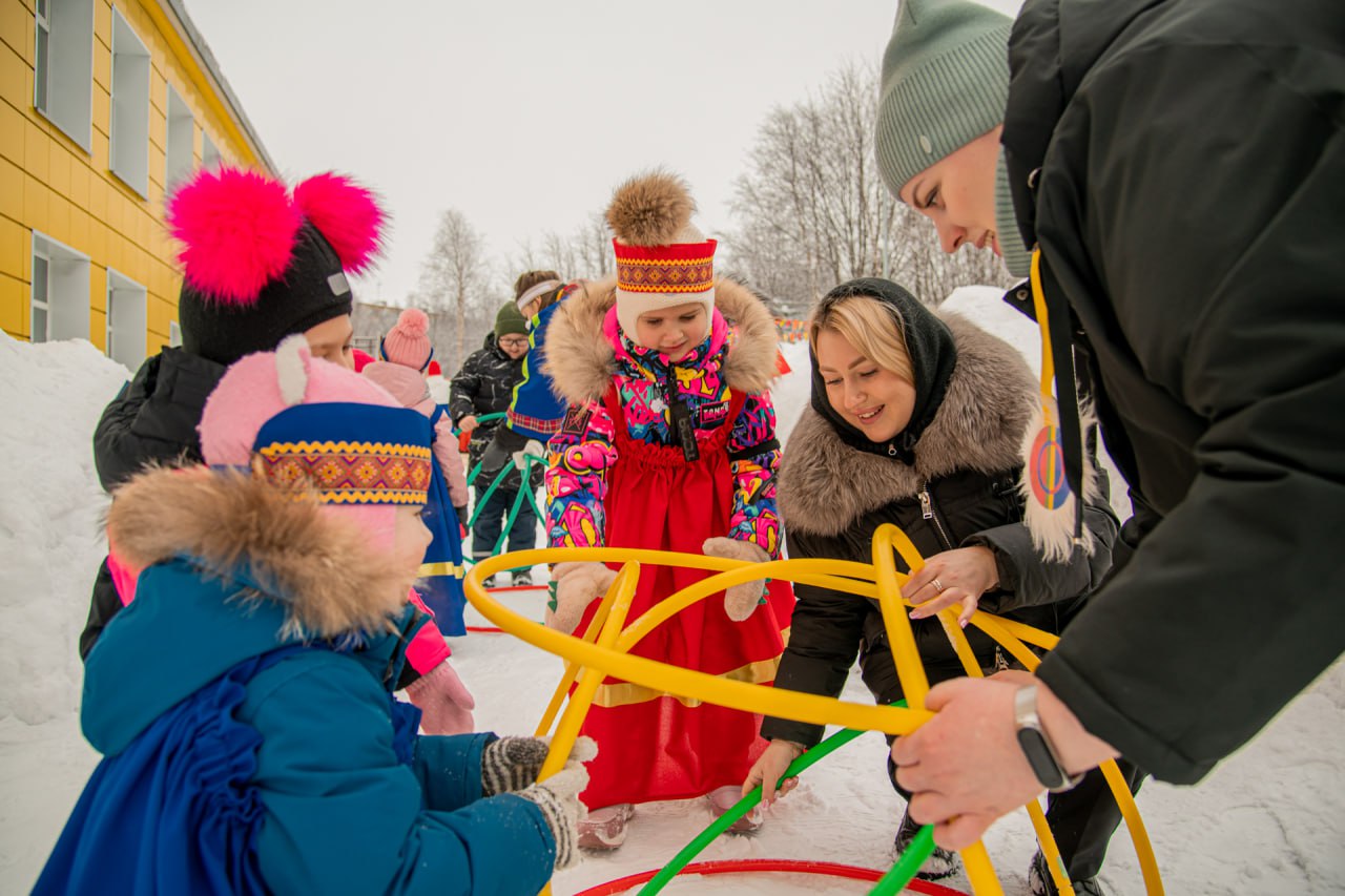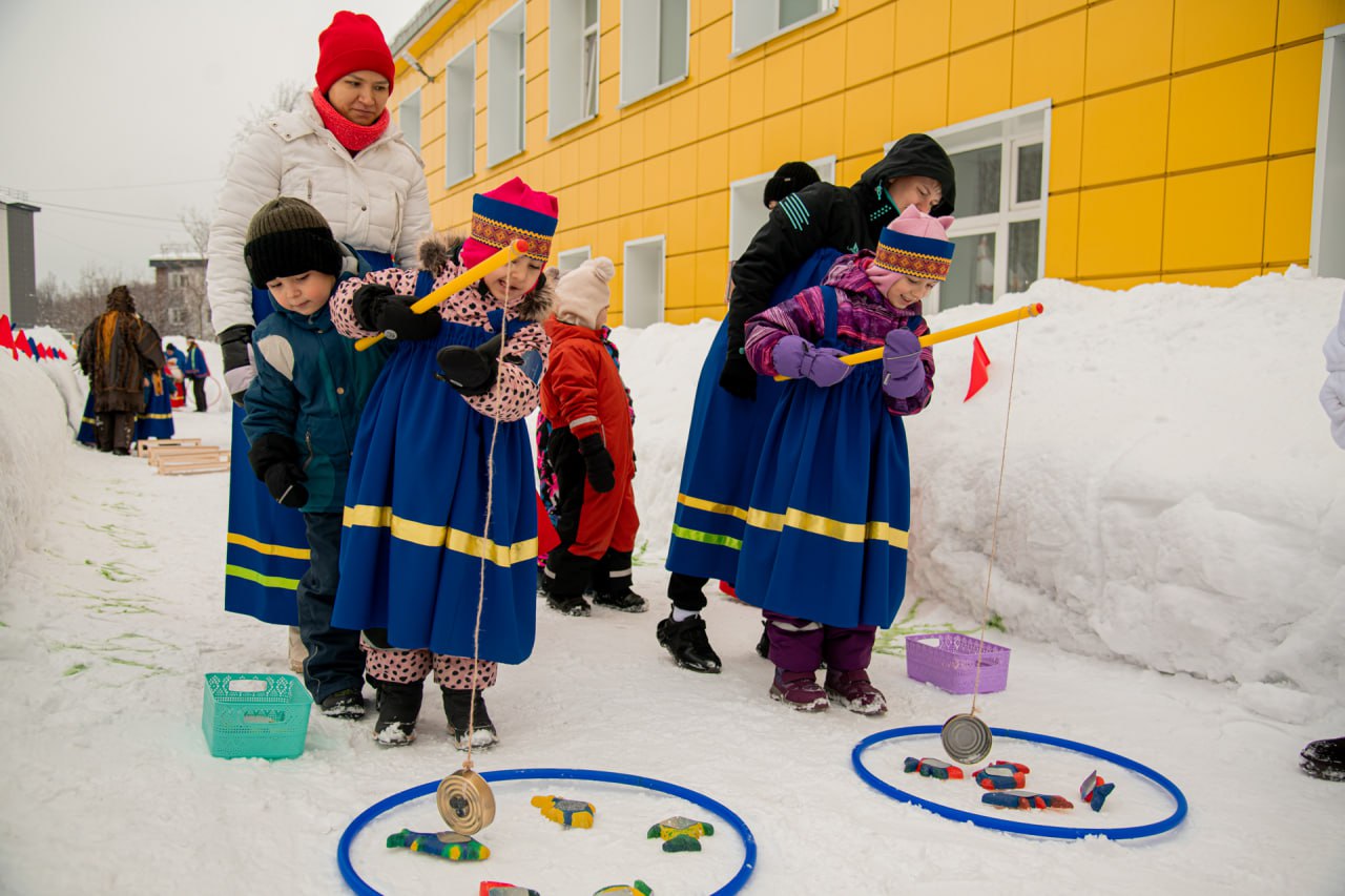 Праздничное спортивное мероприятие было посвящено Году единства народов России. Вместе с Шаманом ребята отправились в увлекательное путешествие по саамской деревне и попробовали свои силы в традиционных играх северного народа. Особое оживление вызвало появление талисмана фестиваля — Белого мишки.