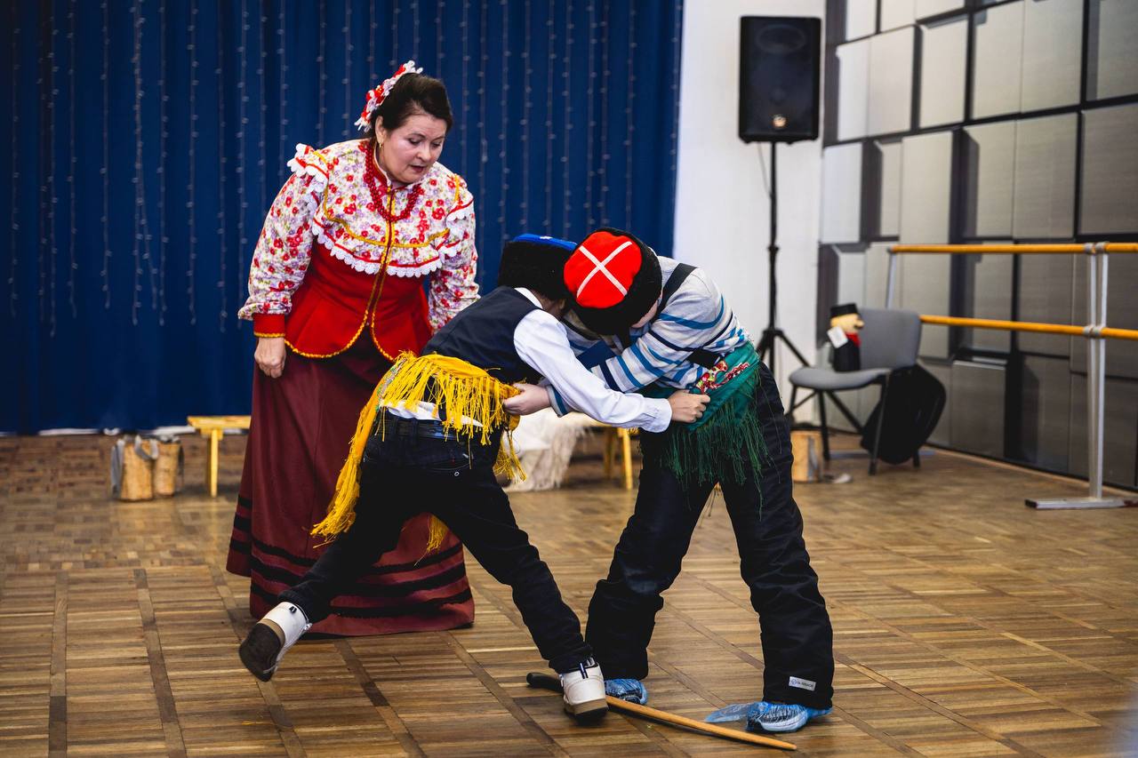 Ребята погрузились в самобытный мир казачьих традиций: познакомились с элементами быта, особенностями традиционного казачьего костюма — его символикой, функциональностью и региональными различиями, а также послушали аутентичное исполнение казачьих песен от ансамбля «Сиверка».