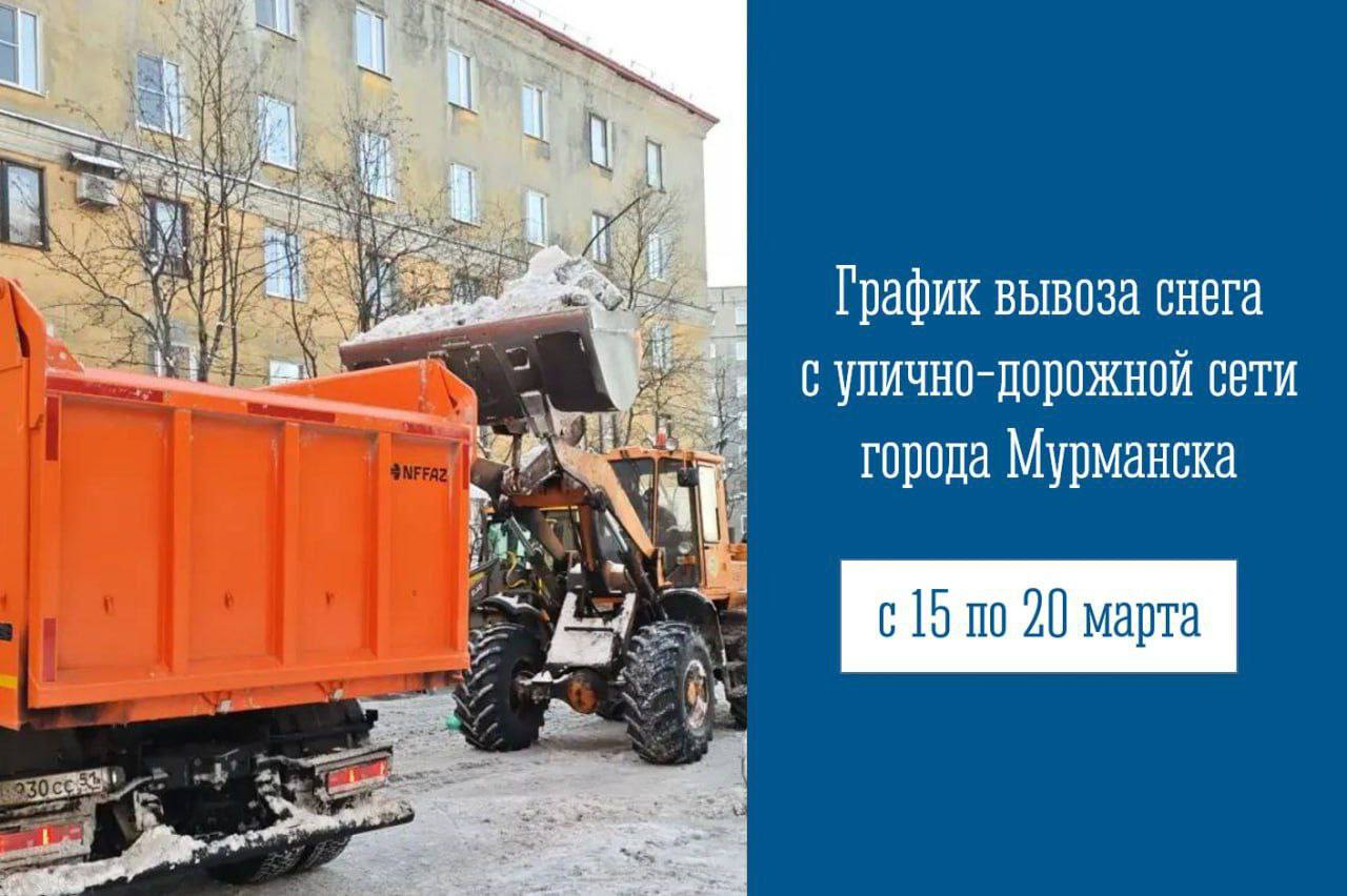 График вывоза снега с улично-дорожной сети города Мурманска с 15 по 20 марта