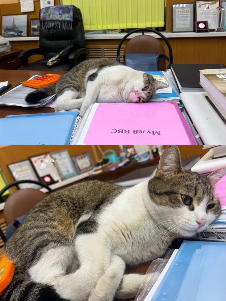 Сотрудники Военно-морского музея Северного флота в Мурманске поделились забавными и милыми фотографиями своего хвостатого сотрудника — кошки по имени Плюша. Эта очаровательная пушистая жительница музея, наряду с другими двумя кошками, активно участвует в поддержании хорошего настроения как у посетителей, так и у сотрудников.