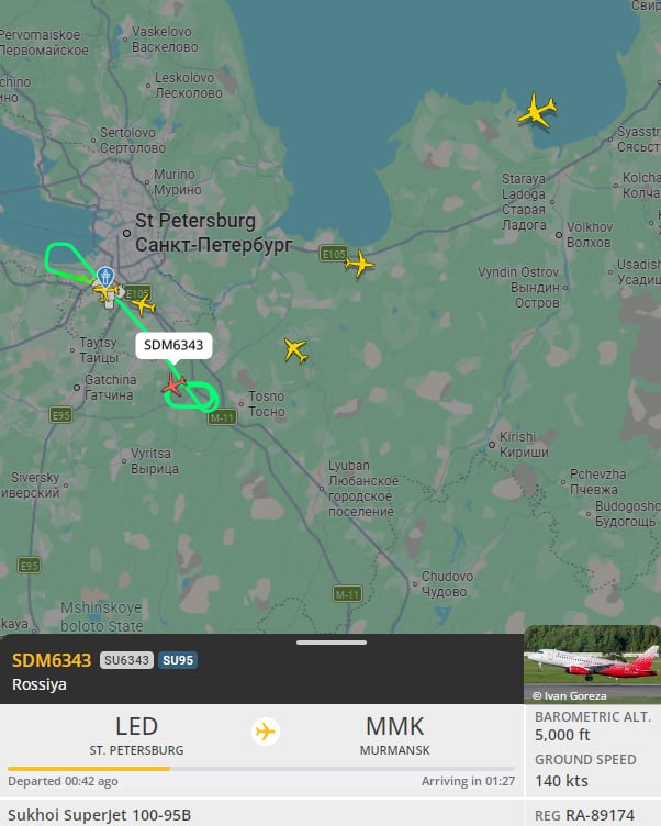 У самолета Петербург — Мурманск, предположительно, возникли технические неполадки.