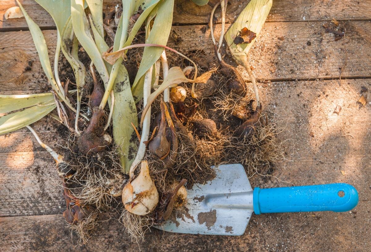- Сначала аккуратно достают луковицы из земли, срезая оставшиеся листья и цветоносы.