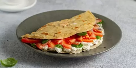 Сборка: На одну половину овсяноблина выложите творог, затем авокадо и помидоры. Накройте другой половиной. Можно украсить свежей зеленью — укропом, петрушкой или рукколой.