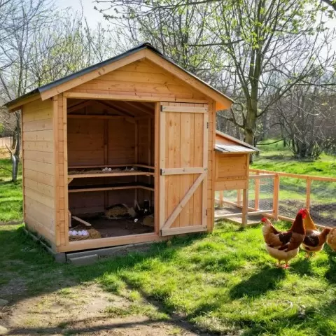 Снаружи курятника крыша лучше всего делать двускатной, чтобы избежать накопления снега и дождевой воды. Внутренний обустройство — это отличная возможность внедрить многофункциональные элементы. Вместо статичных насестов можно установить откидные, а под ними — выдвижные поддоны для легкого сбора помета. Гнезда также можно модернизировать: закрытые конструкции с яйцесборником значительно снижают стресс у кур и защищают яйца от загрязнений.