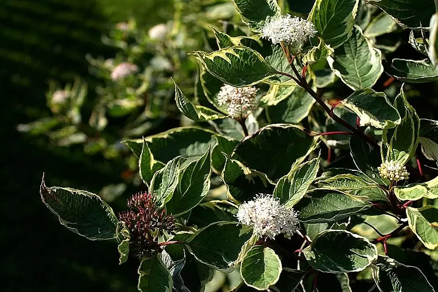 Дёрен (Cornus) - ещё один простой в уходе кустарник, который выделяется яркой корой своих побегов, что особенно заметно в зимний период. В летнее время дёрен привлекает внимание большими листьями, а осенью радует обилием ягод и великолепным цветом стеблей, который варьируется от красного до желтого, в зависимости от вида.