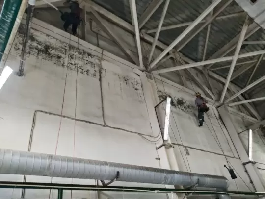 Следующим этапом после удаления плесени становится подготовка поверхности для покраски. Работы начинаются с укрытия оборудования, чтобы избежать загрязнения. Важно сохранить чистоту и порядок на производстве, несмотря на все ремонтные работы.