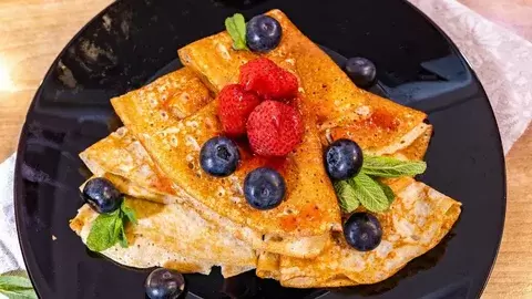 Блины можно подавать с кокосовыми сливками и свежими ягодами, чтобы дополнить вкус и насытить блюдо.