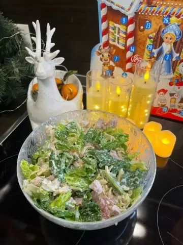 Листья салата, курица или индейка, натертый сыр и легкая заправка из сметаны и йогурта создают свежий, не перегруженный вкус. Важна умеренность соуса: достаточно тонкой линии вкуса, чтобы сохранить легкость блюда.