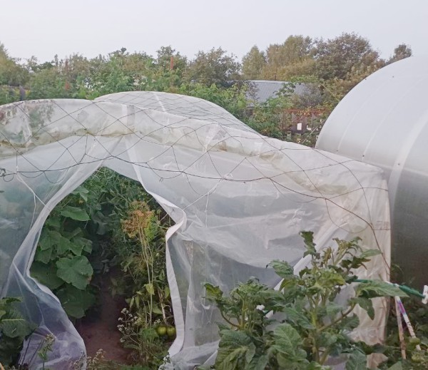 Однако у этой жизнелюбивой теплицы имеются темные страницы. Первая из них произошла в 2010 году, когда в Нижегородской области температура поднялась до 35 градусов. Пластик тогда начал расплавляться, и арки скривились под давлением не только жары, но и богатого урожая томатов, подвязанных к каркасу. Но с помощью надлежащих манипуляций конструкция устояла.