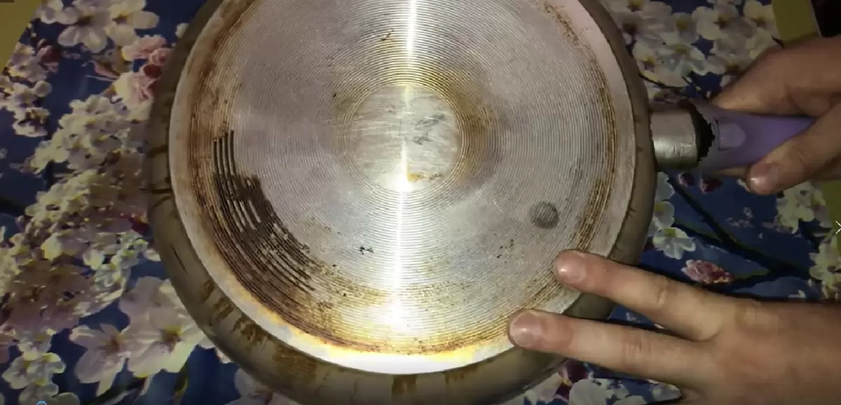 - Важно, чтобы сковорода была полностью покрыта раствором, иначе некоторые загрязнения могут остаться.