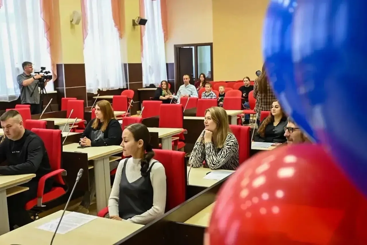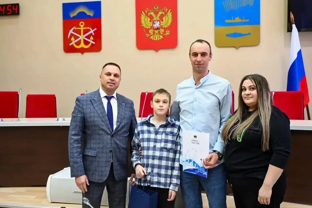 На церемонии вручения в зале заседаний Совета депутатов города Мурманска (ул. Комсомольская, 10) из-за непогоды смогли присутствовать не все получатели, тем не менее, немалая доля семей пришла вместе с детьми.