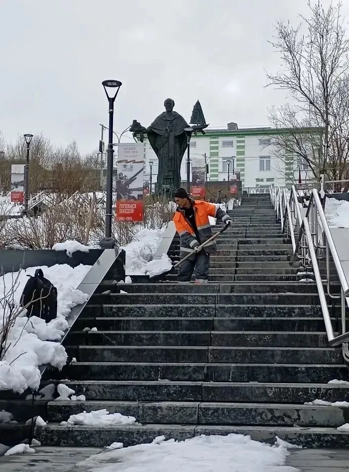Сегодня на объектах МАУК «Мурманские городские парки и скверы» работают 70 человек и 8 единиц техники. Расчистка, вывоз снега - город нужно привести в порядок.